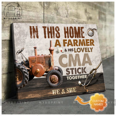 In This Home A Farmer & His Lovely CPA Stick Together Personalized Wall Art Canvas