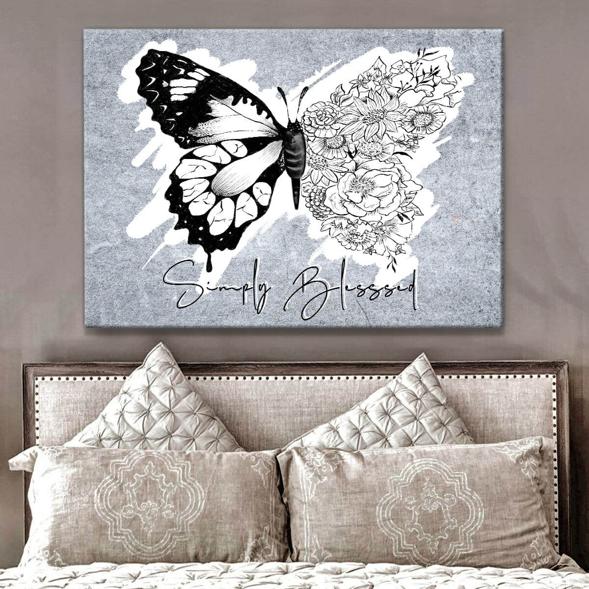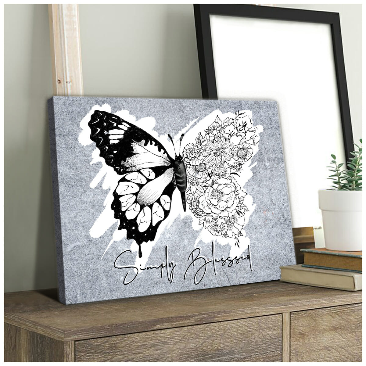 Butterfly Simply Blessed Stone Wall Art Canvas